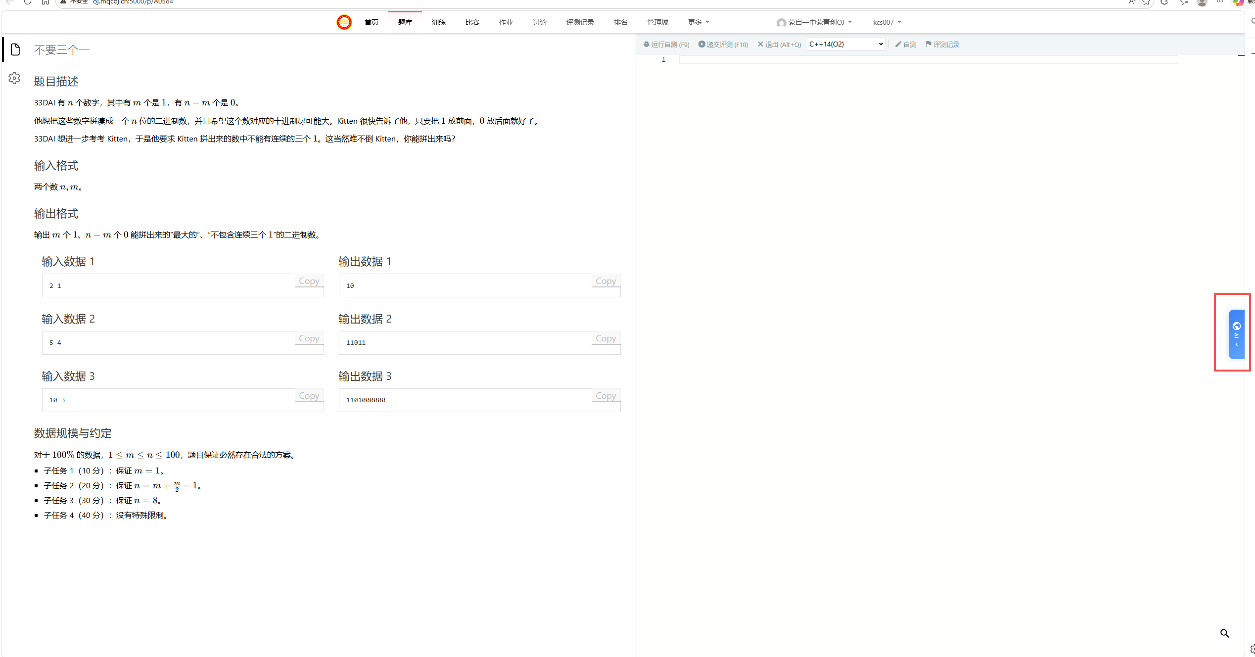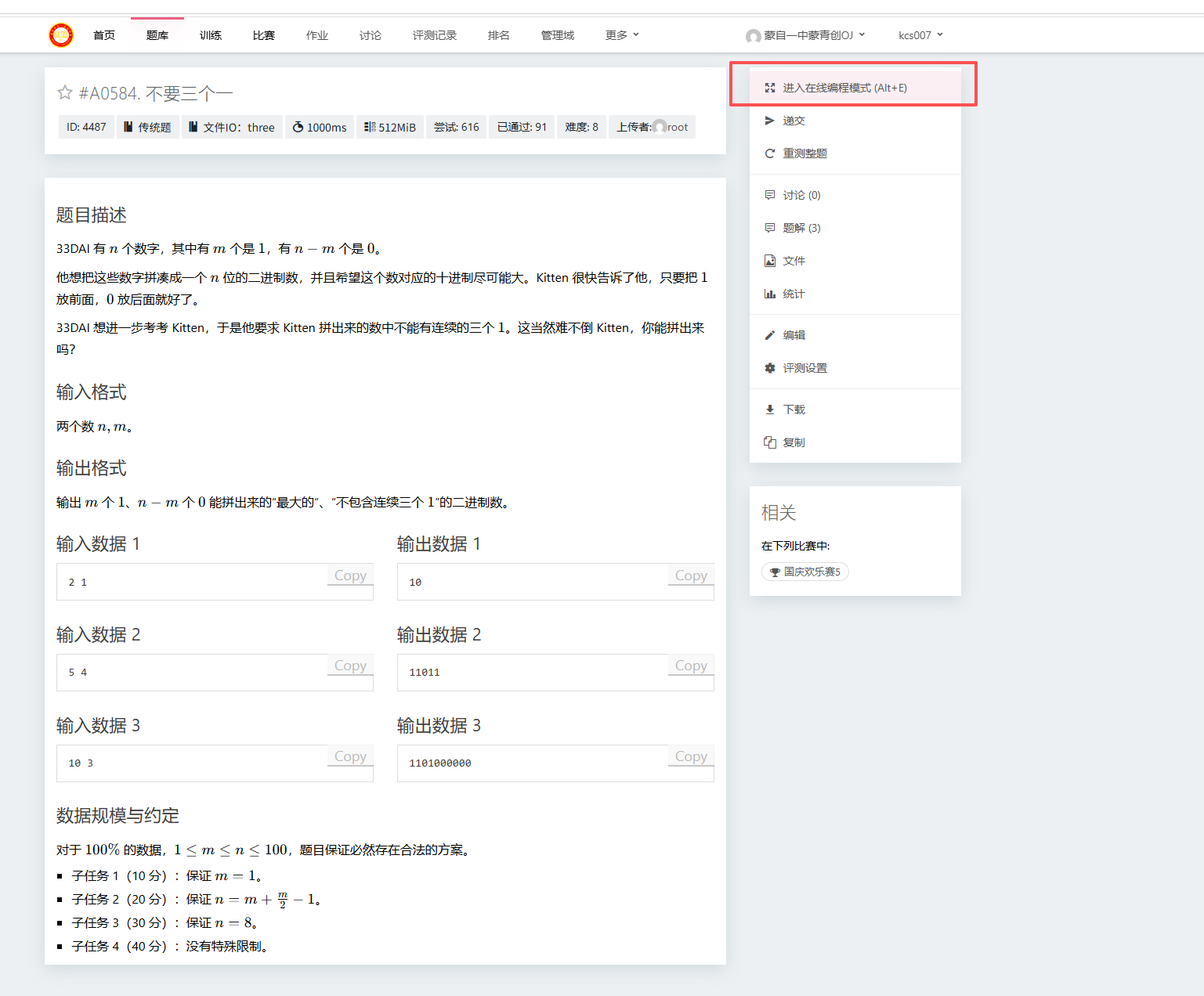 第一步,点击题目进入在线编程模式